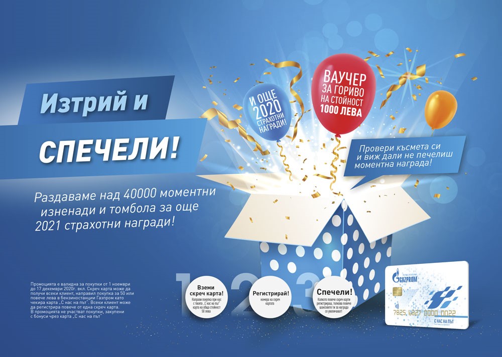 - Наградата ще Ви чака след 6 януари 2021г в посочения в съобщението обект бензиностанция „Газпром“